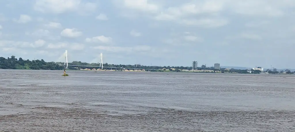 Nous avons voyagé de Kinshasa aux chutes de Zongo. La première route que nous avions prévu d’emprunter était fermée, nous avons donc dû prendre un itinéraire alternatif, ce qui a ajouté environ quatre heures au trajet. Nous sommes arrivés en fin d’après-midi et avons passé la nuit dans un hôtel près des chutes.